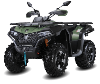 Усилитель рулевого управления (EPS), вариатор CVTech (Канада), электронный курок газа, зеркала заднего вида, полностью светодиодная оптика, многофункциональная приборная LСD-панель с новым интерфейсом, лебедка 1361 кгс (3000 lbs), защита рук, алюминиевые упоры для ног водителя, передние и задние грузовые площадки, крашеный стальной бампер, 26″ резина ANCLA с развитым грунтозацепом, 12″ алюминиевые диски, аккумулятор повышенной емкости (30Ач), электрическая розетка 12V и розетка USB, фаркоп